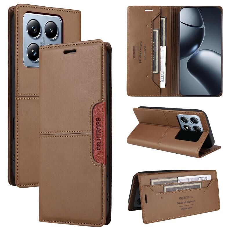 For Xiaomi 14T Pro GQUTROBE G01 RFID Anti-theft Leather Phone Case(Brown) (GQUTROBE)