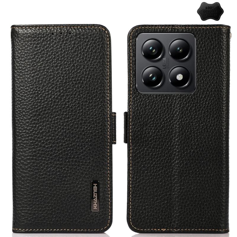 For Xiaomi 14T Pro KHAZNEH Side-Magnetic Litchi Genuine Leather RFID Phone Case(Black)