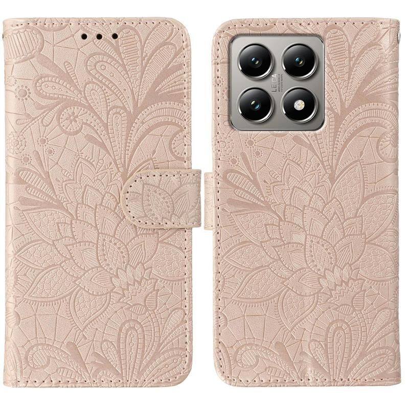 For Xiaomi 14T Pro Lace Flower Embossing Flip Leather Phone Case(Rose Gold)