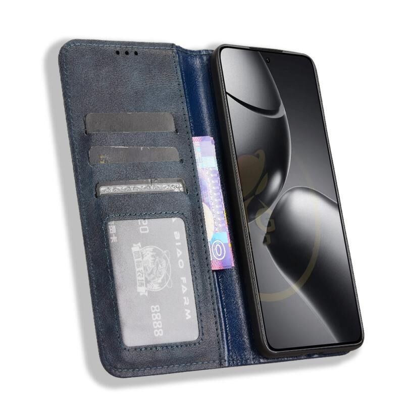 Για Xiaomi 14T Pro Μαγνητική πόρπη ρετρό υφή δερμάτινη θήκη τηλεφώνου (μπλε)
