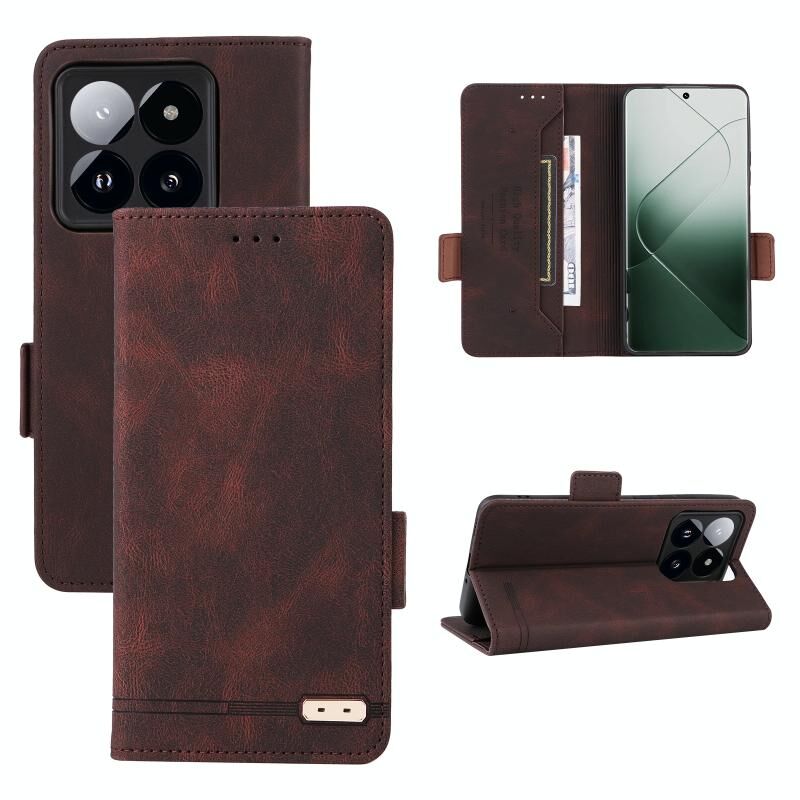 Για Xiaomi 14T Pro Μαγνητικό κούμπωμα Δερμάτινη θήκη τηλεφώνου (καφέ)