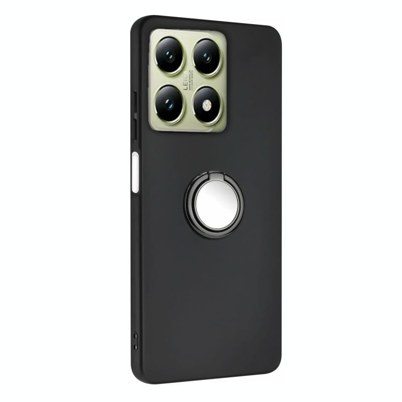 Για Xiaomi 14T Pro Matte Ring Holder TPU τηλέφωνο υπόθεση (μαύρο)