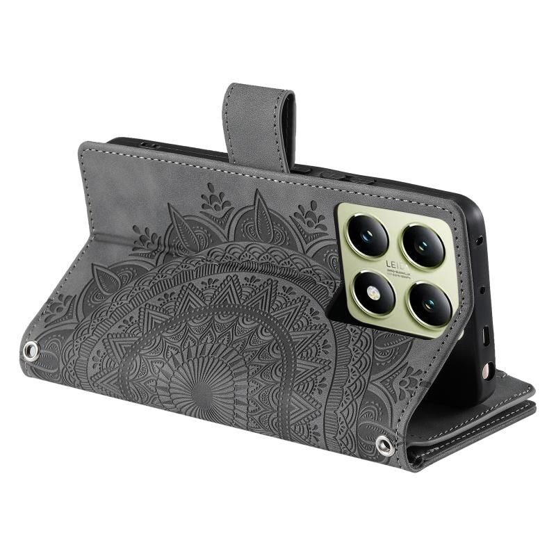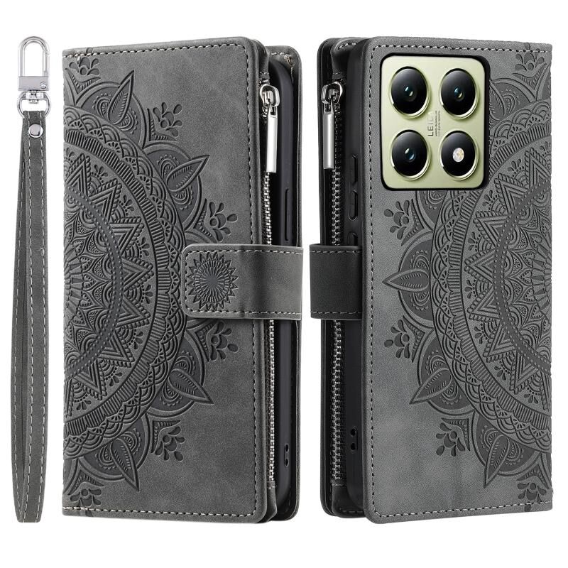 Για Xiaomi 14T Pro Multi-Card Totem φερμουάρ δερμάτινη θήκη τηλεφώνου (γκρι)