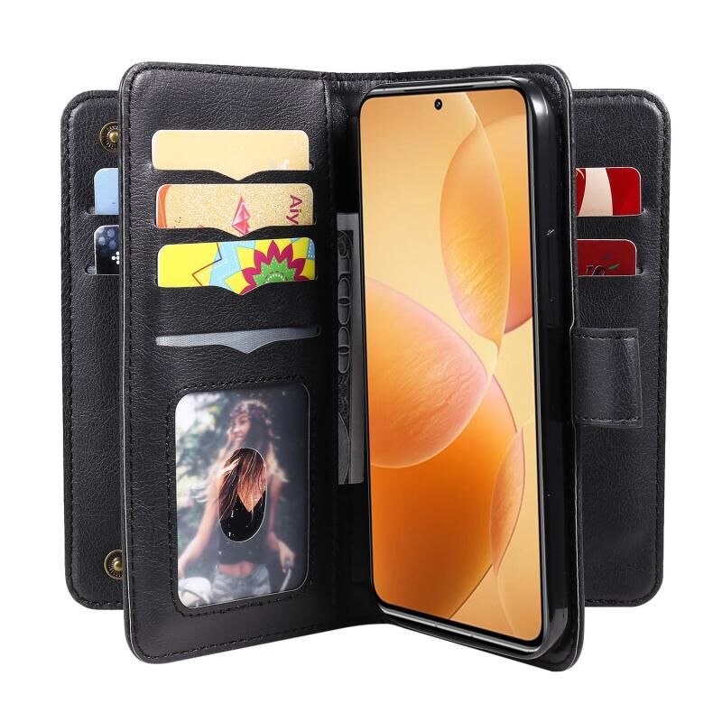 Για Xiaomi 14T Pro Πολυλειτουργικό πορτοφόλι 10 υποδοχές καρτών Δερμάτινη θήκη τηλεφώνου (μαύρο)