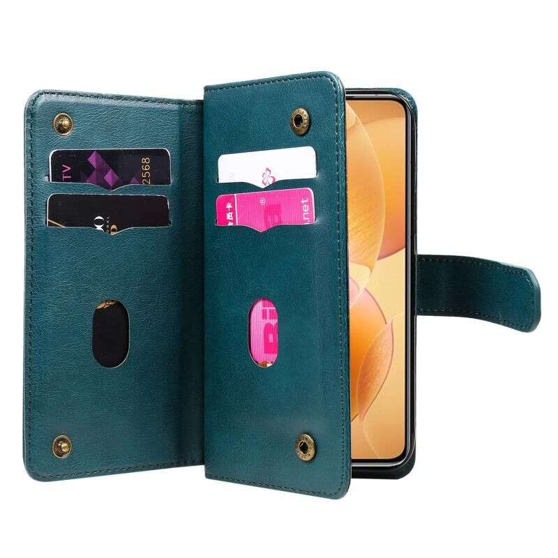 Για Xiaomi 14T Pro Πορτοφόλι πολλαπλών λειτουργιών 10 υποδοχές καρτών Δερμάτινη θήκη τηλεφώνου (σκούρο πράσινο)