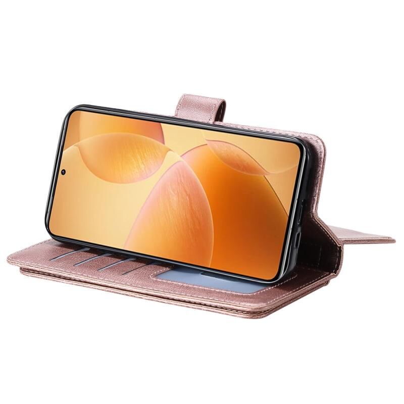 Για Xiaomi 14T Pro Πολυλειτουργικό πορτοφόλι 10 υποδοχές καρτών Δερμάτινη θήκη τηλεφώνου (Rose Gold)
