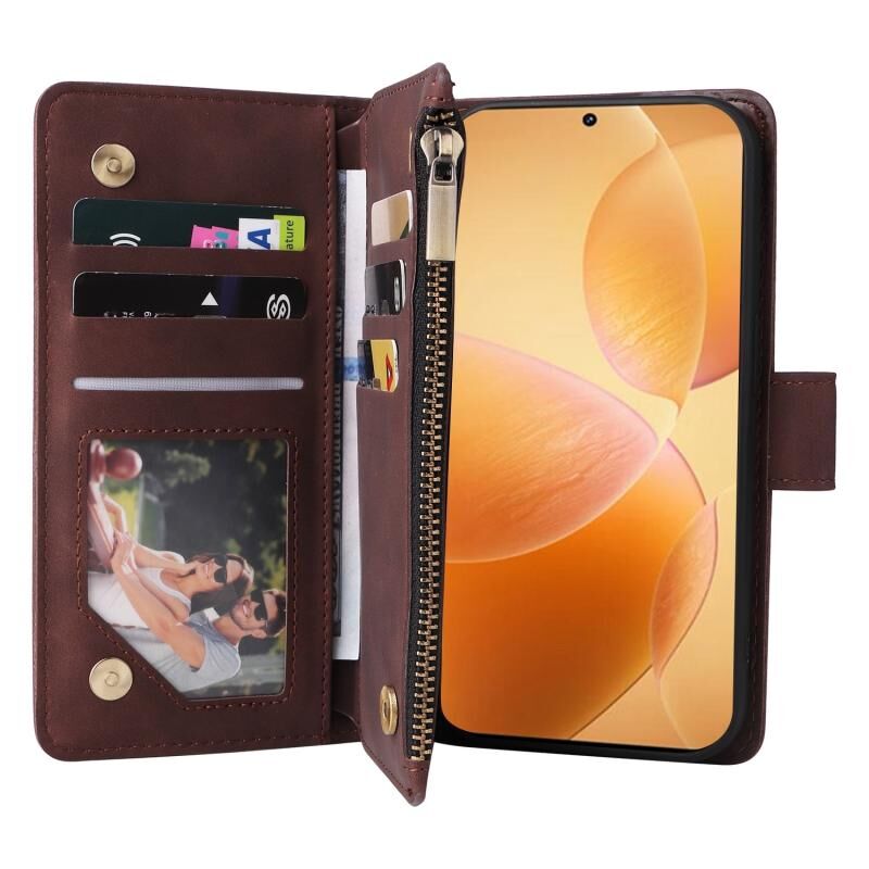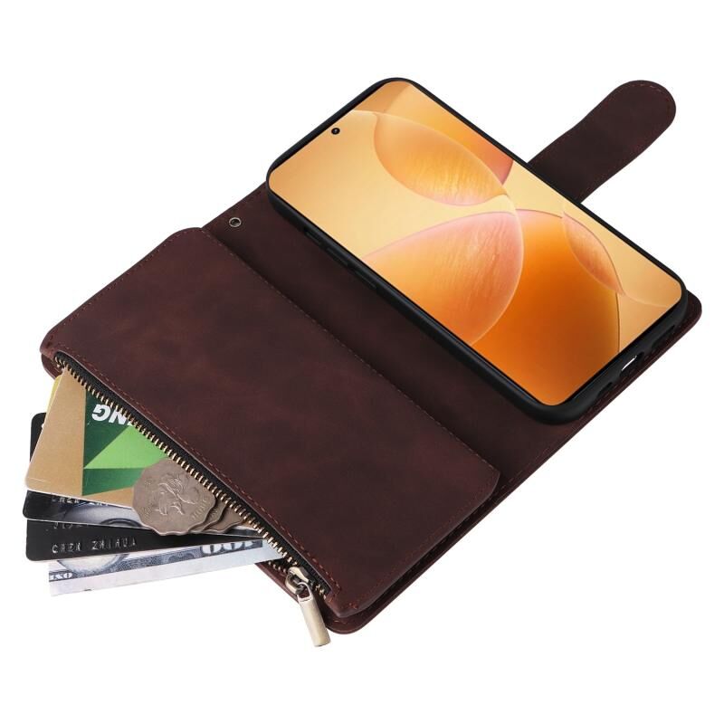 Για Xiaomi 14T Pro Πολυλειτουργικό παγωμένο φερμουάρ πορτοφόλι δερμάτινη θήκη τηλεφώνου (καφέ)