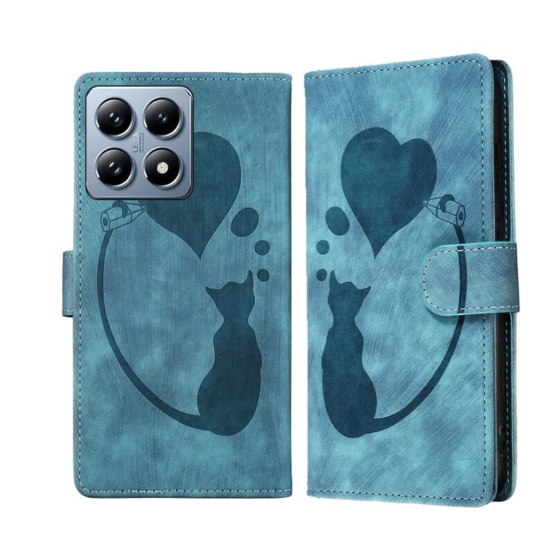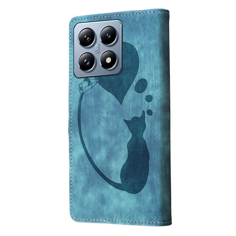 Θήκη τηλεφώνου δερμάτινη με ανάγλυφο σχέδιο καρδιάς και γάτας για Xiaomi 14T Pro (Πορτοκαλί)