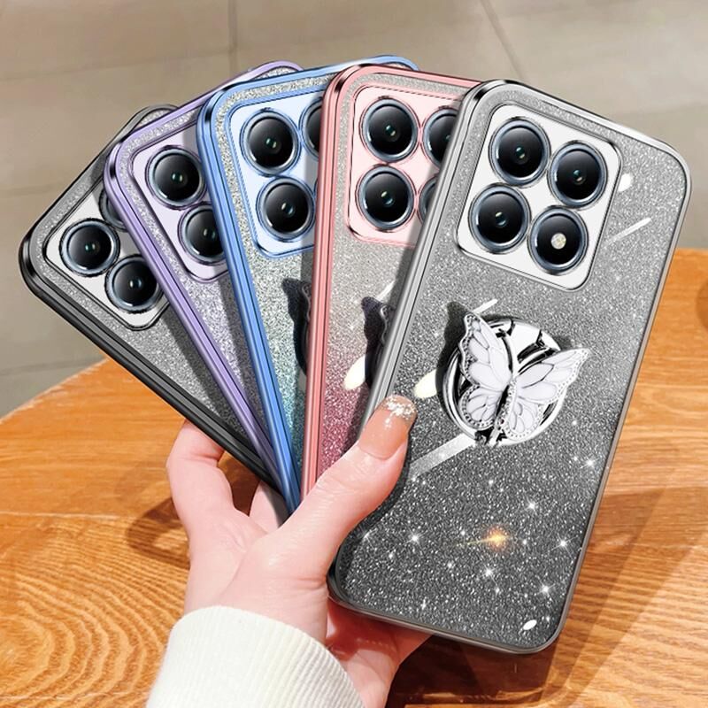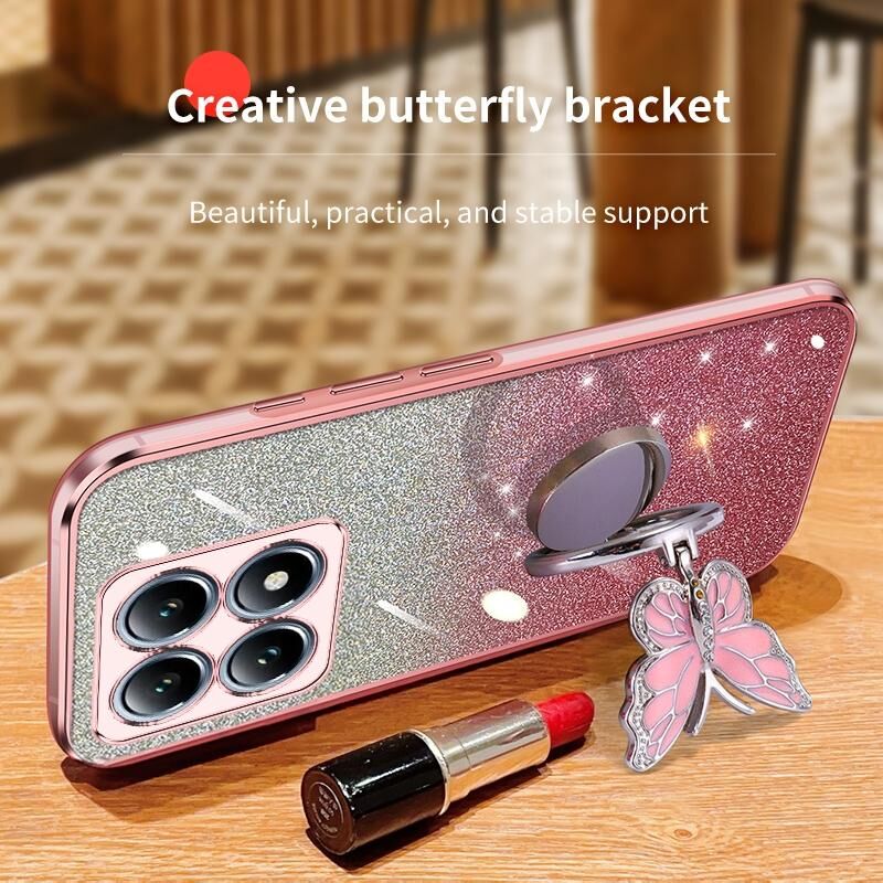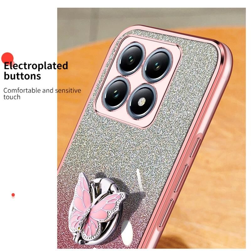 For Xiaomi 14T Pro Plated Gradient Glitter Butterfly Holder TPU Phone Case(Purple)