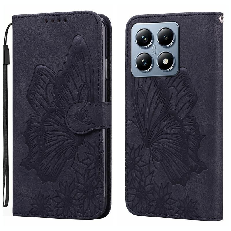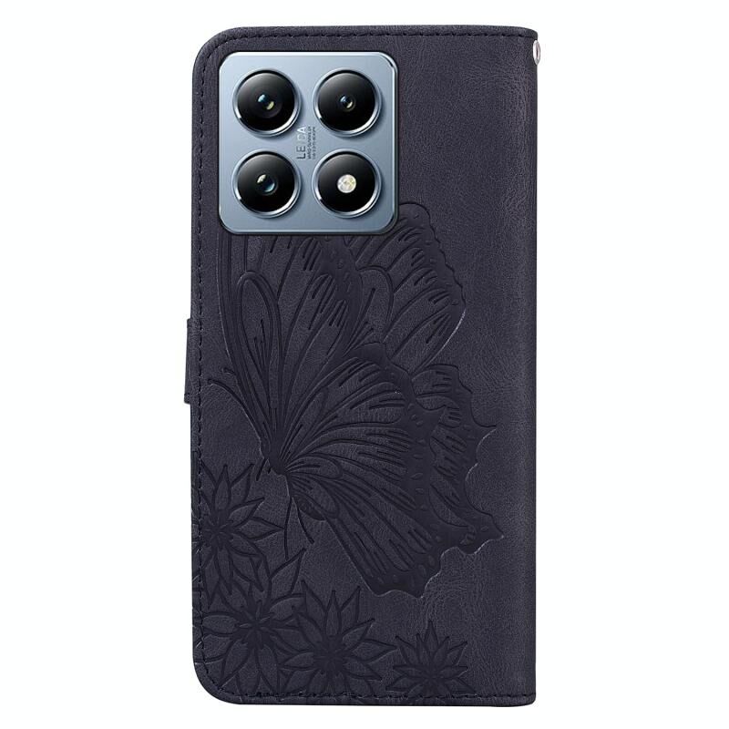 Θήκη τηλεφώνου δερμάτινη, οριζόντια, με ανάγλυφα σχέδια πεταλούδων και υφή retro για Xiaomi 14T Pro (Μαύρο)