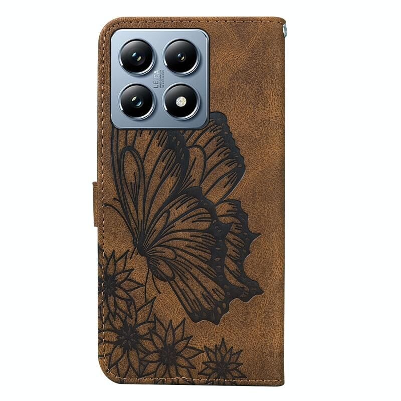 Θήκη τηλεφώνου δερμάτινη, οριζόντια, με ανάγλυφα σχέδια πεταλούδων και υφή retro για Xiaomi 14T Pro (Μαύρο)
