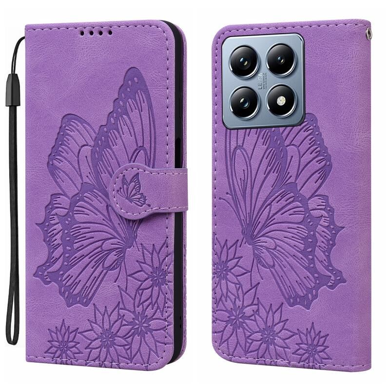 Θήκη τηλεφώνου δερμάτινη, οριζόντια, με ανάγλυφα σχέδια πεταλούδων και υφή retro για Xiaomi 14T Pro (Μαύρο)