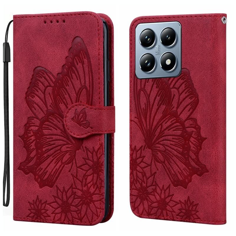 Θήκη τηλεφώνου δερμάτινη, οριζόντια, με ανάγλυφα σχέδια πεταλούδων και υφή retro για Xiaomi 14T Pro (Μαύρο)
