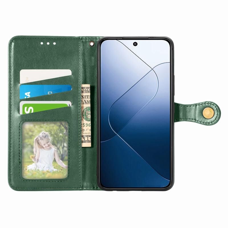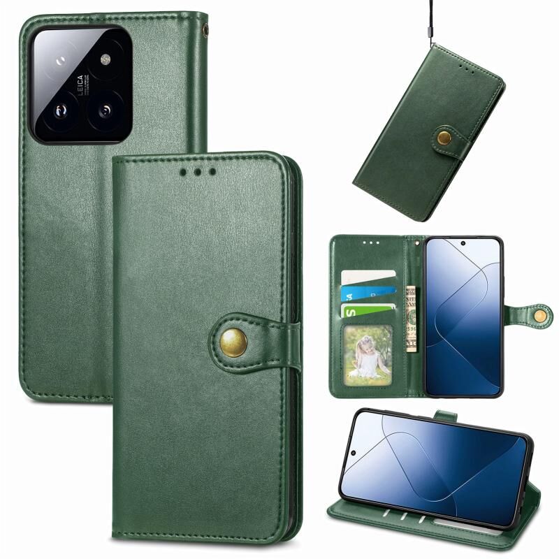 Για Xiaomi 14T Pro Ρετρό στερεό χρώμα πόρπη δερμάτινη θήκη τηλεφώνου (πράσινο)