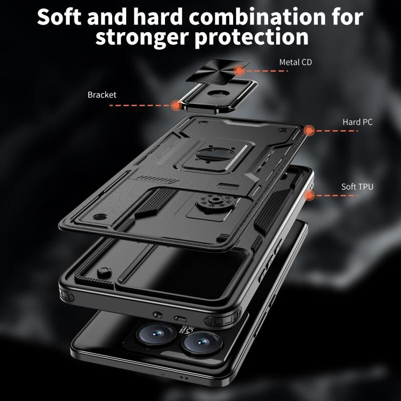 Για Xiaomi 14T Pro Ring Holder PC Hybrid TPU τηλέφωνο υπόθεση (μαύρο)
