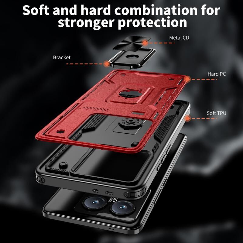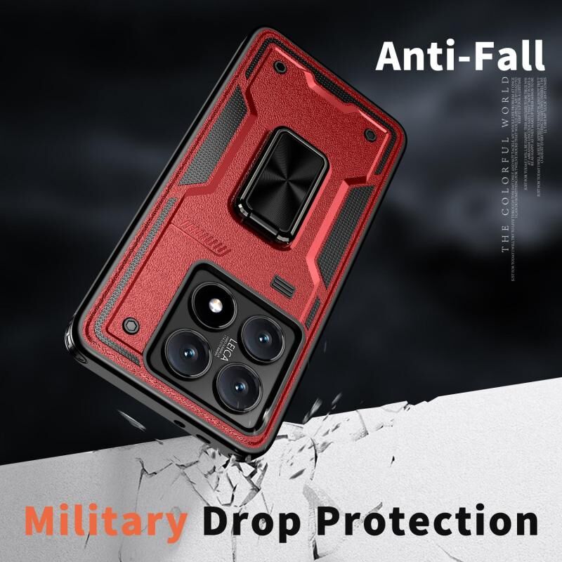 Για Xiaomi 14T Pro Ring Holder PC Hybrid TPU τηλέφωνο υπόθεση (κόκκινο)