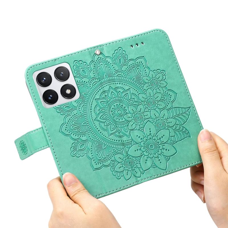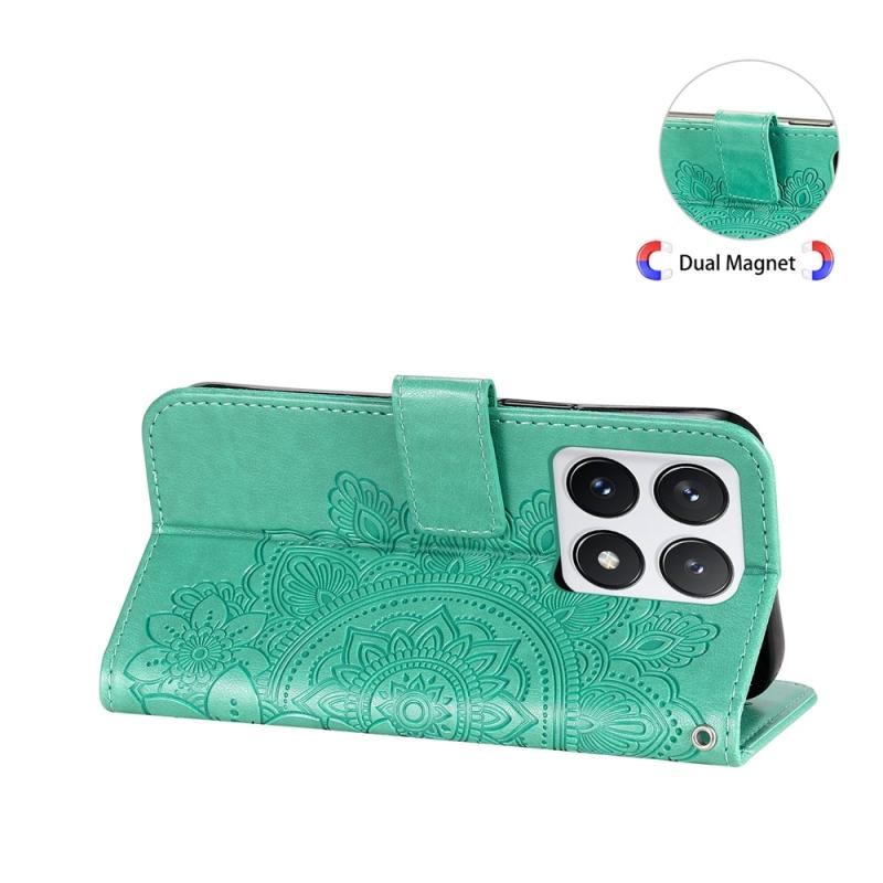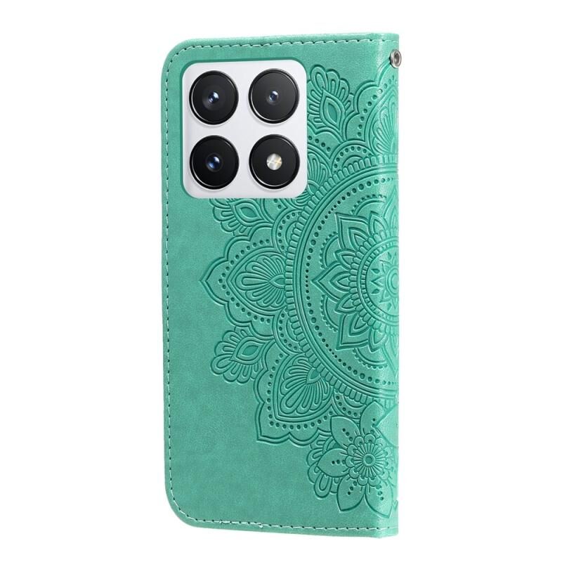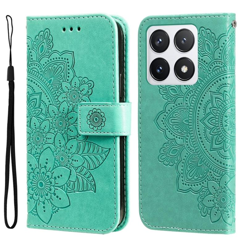 For Xiaomi 14T Pro Seven-petal Flowers Embossing Leather Phone Case(Green)