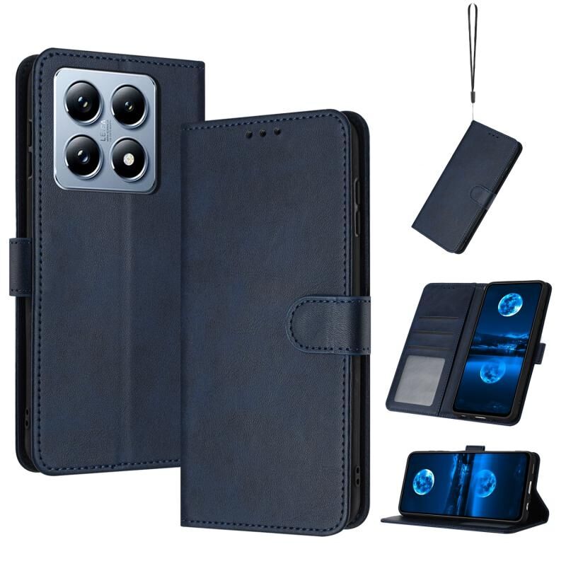 Για Xiaomi 14T Pro Στερεά μοσχάρι υφή Flip υπόθεση τηλεφώνου δέρμα (σκούρο μπλε)