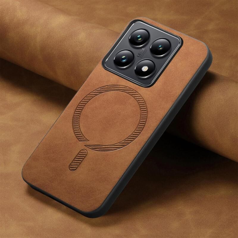 For Xiaomi 14T Pro Solid Color Retro Magsafe PU Back Cover Phone Case(Brown)