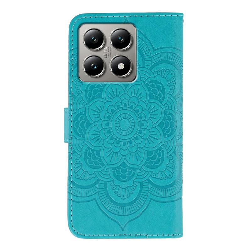 Θήκη δερμάτινη για Xiaomi 14T Pro με ανάγλυφο σχέδιο Sun Mandala (Μπλε)
