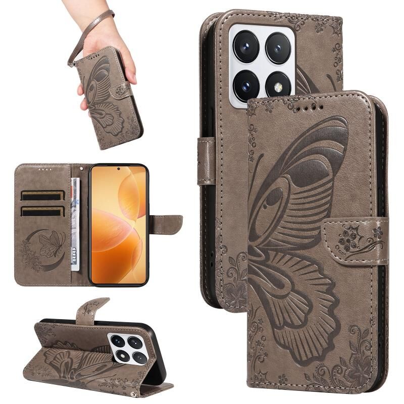Θήκη τηλεφώνου από δέρμα με ανάγλυφο σχέδιο πεταλούδας Swallowtail για Xiaomi 14T Pro (Γκρι)