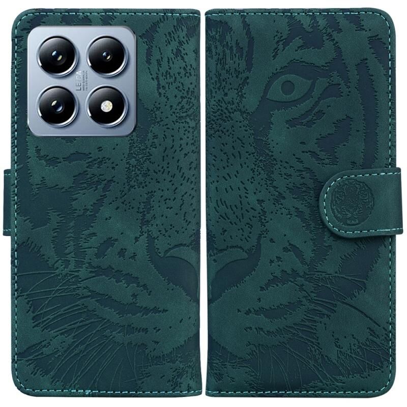 For Xiaomi 14T Pro Tiger Embossing Pattern Flip Leather Phone Case(Green)