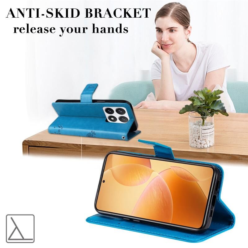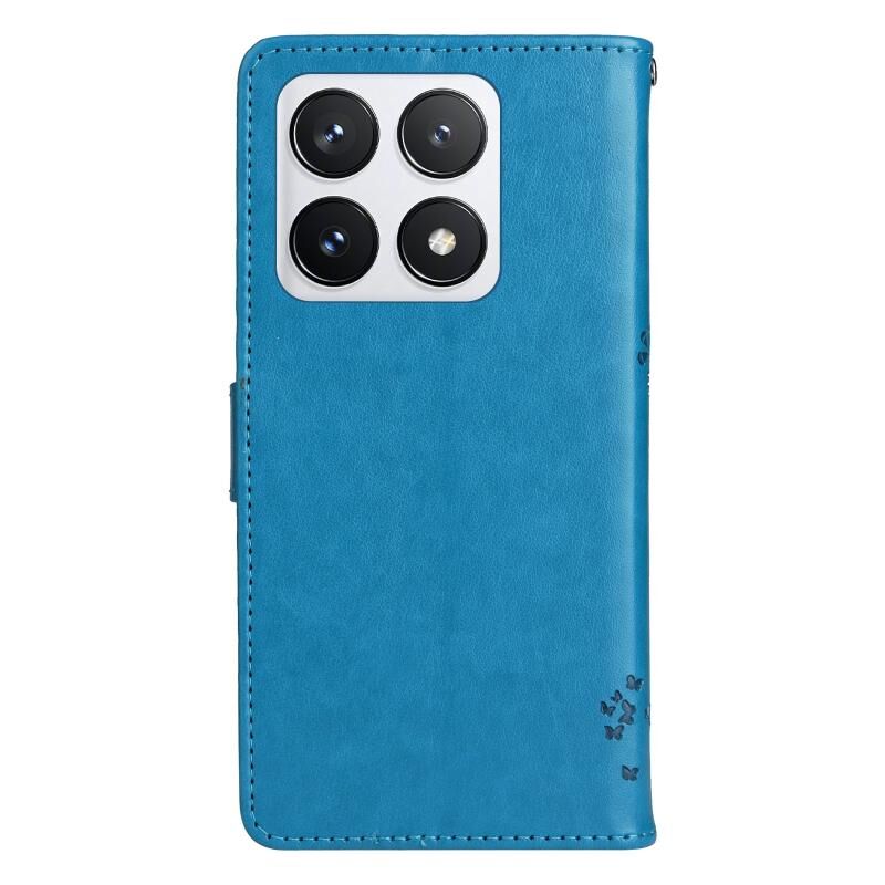 For Xiaomi 14T Pro Tree & Cat Embossed Pattern Flip Leather Phone Case(Blue)