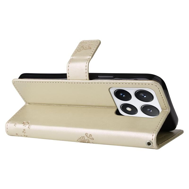 For Xiaomi 14T Pro Tree & Cat Embossed Pattern Flip Leather Phone Case(Gold)
