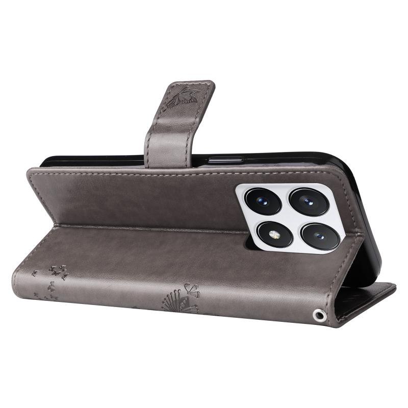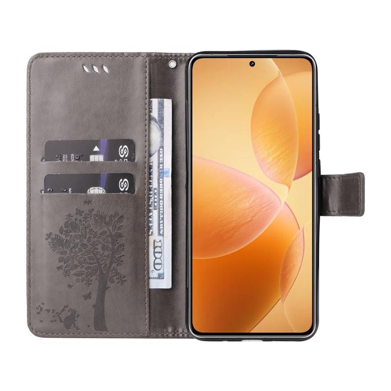 For Xiaomi 14T Pro Tree & Cat Embossed Pattern Flip Leather Phone Case(Grey)