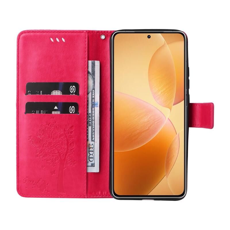 For Xiaomi 14T Pro Tree & Cat Embossed Pattern Flip Leather Phone Case(Rose Red)