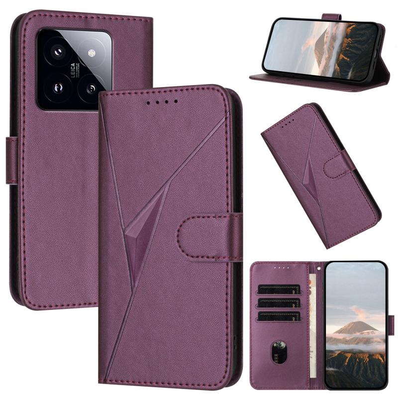 For Xiaomi 14T Pro Triangle Pattern Buckle Clasp Leather Phone Case(Dark Purple)
