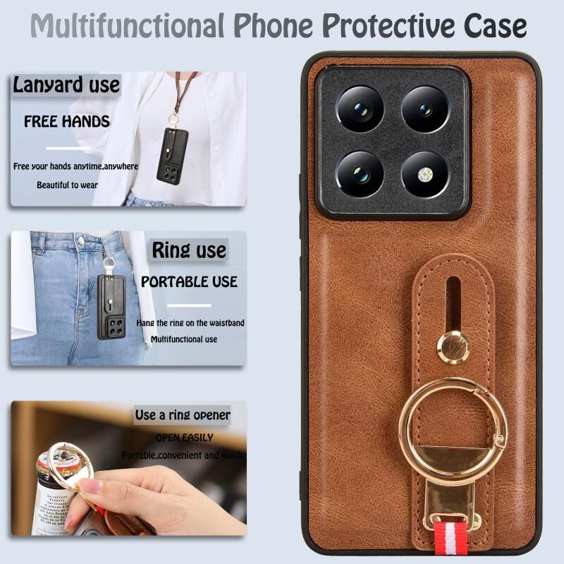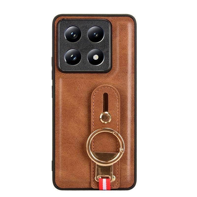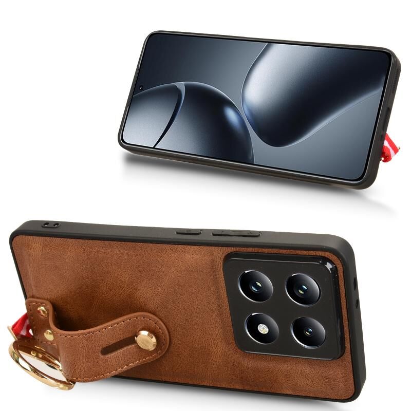 Για Xiaomi 14T Pro Wristband δέρμα πίσω υπόθεση τηλεφώνου (Καφέ)