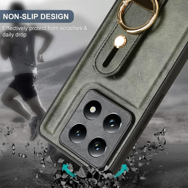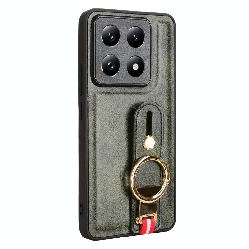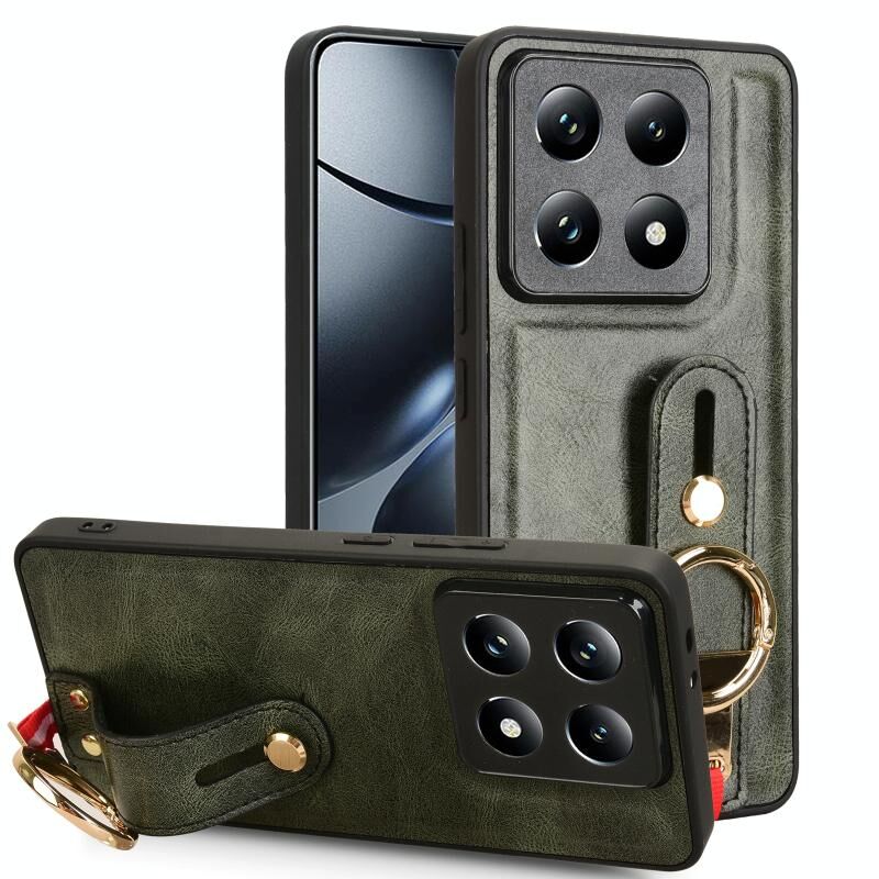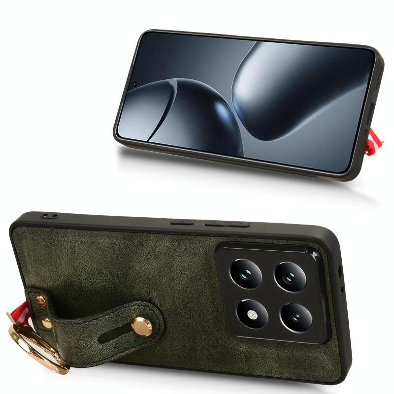 Για Xiaomi 14T Pro Wristband δέρμα πίσω υπόθεση τηλεφώνου (πράσινο)