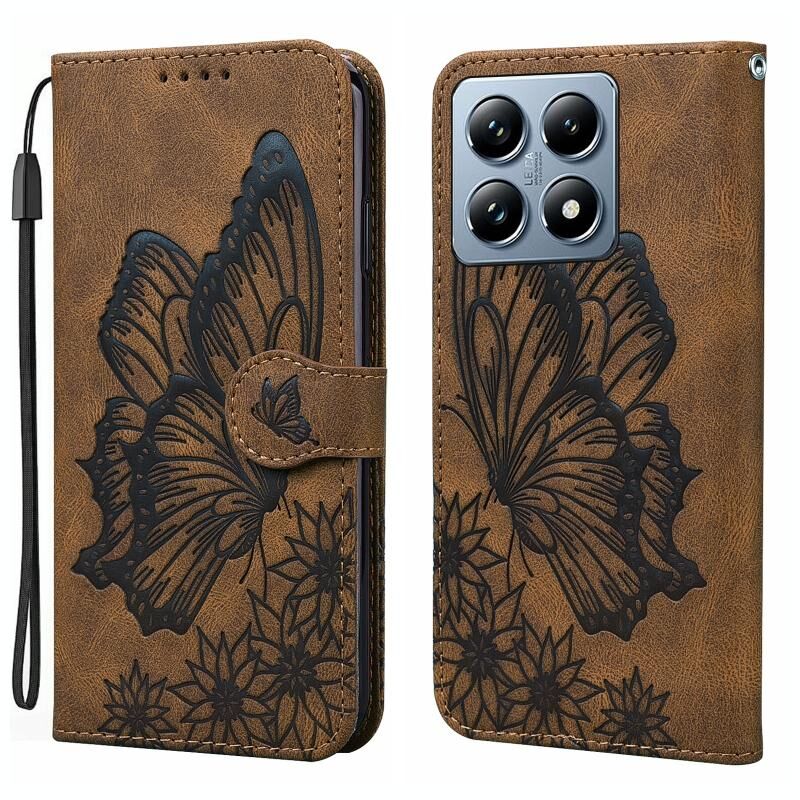 Θήκη τηλεφώνου δερμάτινη οριζόντιας αναδίπλωσης για Xiaomi 14T με ανάγλυφο σχέδιο πεταλούδων και υφή retro (Μαύρο)