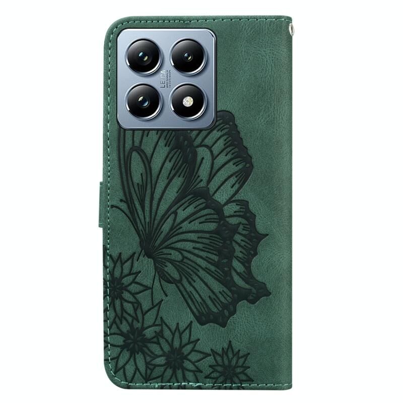 Θήκη τηλεφώνου δερμάτινη οριζόντιας αναδίπλωσης για Xiaomi 14T με ανάγλυφο σχέδιο πεταλούδων και υφή retro (Μαύρο)