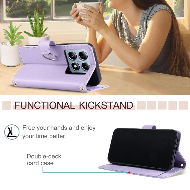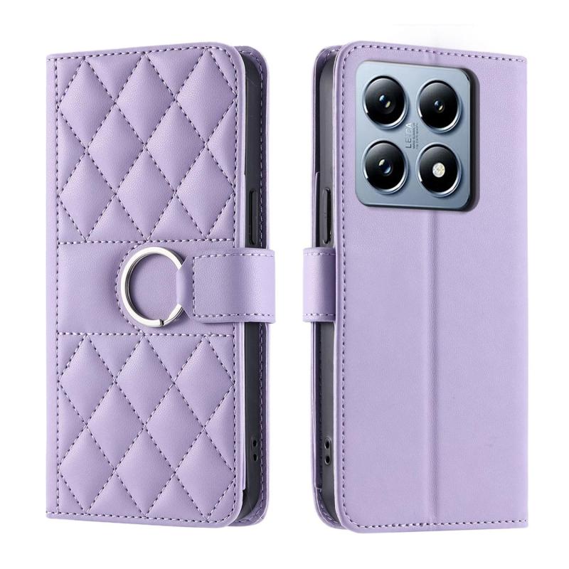 For Xiaomi 14T Ring Buckle Rhombic Leather Phone Case(Purple)