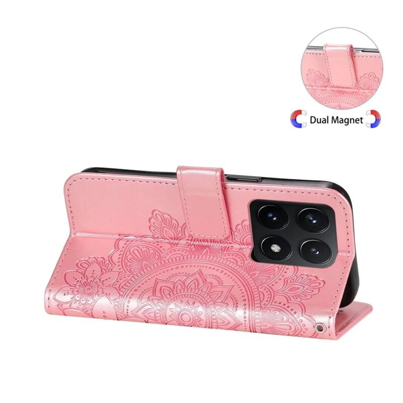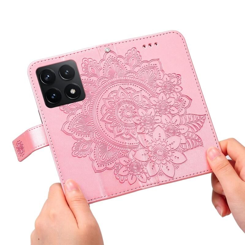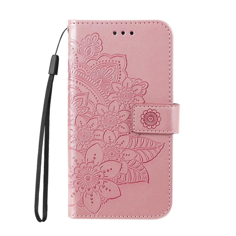 Για Xiaomi 14T Επτά-πέταλα λουλούδια ανάγλυφη δερμάτινη θήκη τηλεφώνου (Rose Gold)