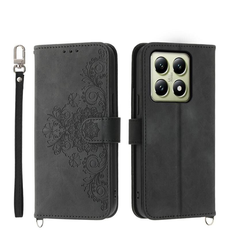 For Xiaomi 14T Skin Feel Flowers Embossed Wallet Leather Phone Case(Black)