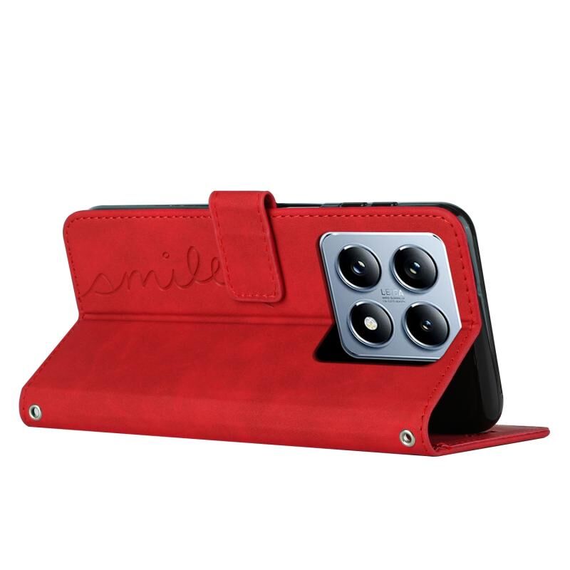 Για Xiaomi 14T δέρμα αισθάνονται καρδιά ανάγλυφο δέρμα τηλέφωνο υπόθεση (κόκκινο)