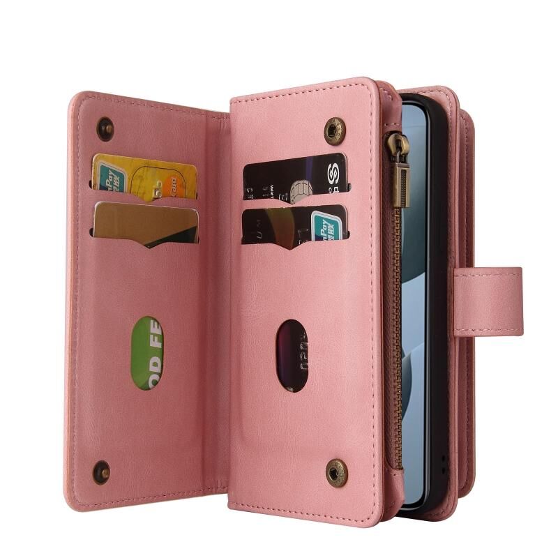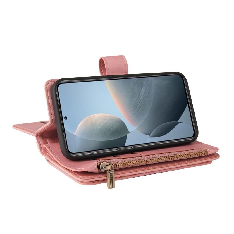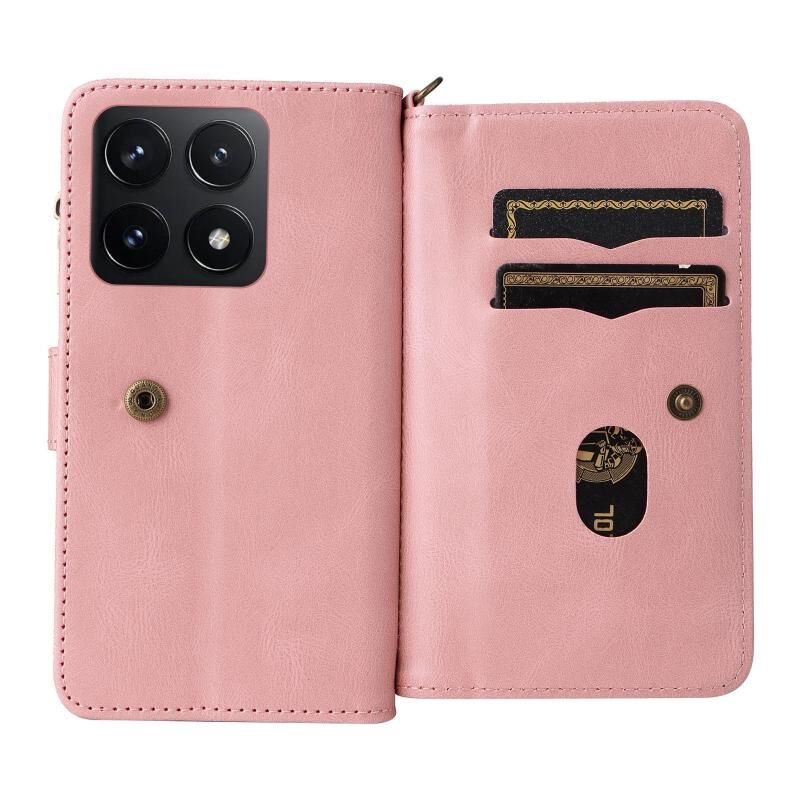 Για Xiaomi 14T δέρμα αίσθηση πολλαπλών καρτών υποδοχές φερμουάρ πορτοφόλι δερμάτινη θήκη τηλεφώνου (ροζ)