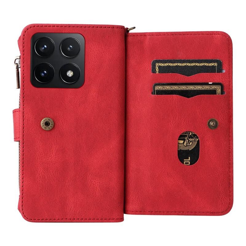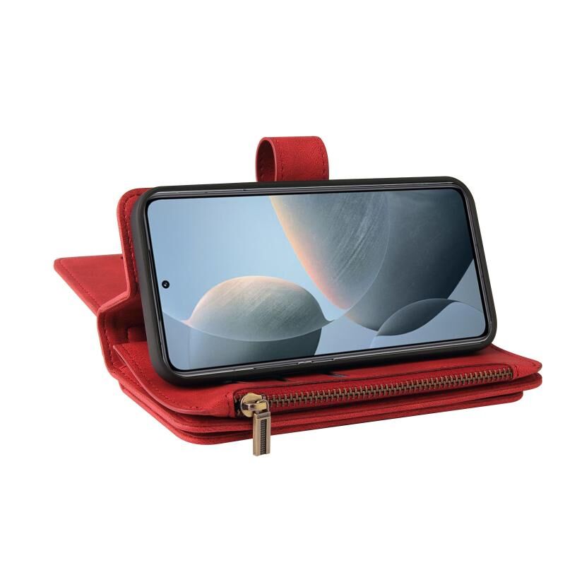 Για Xiaomi 14T δέρμα αίσθηση πολλαπλών καρτών υποδοχές φερμουάρ πορτοφόλι δερμάτινη θήκη τηλεφώνου (κόκκινο)