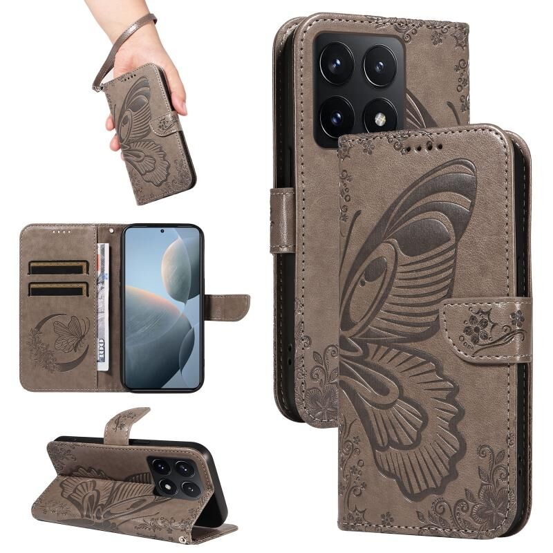 Θήκη τηλεφώνου από δέρμα με ανάγλυφο σχέδιο πεταλούδας Swallowtail για Xiaomi 14T (Κόκκινο)