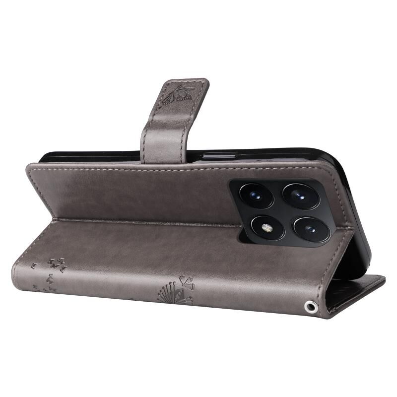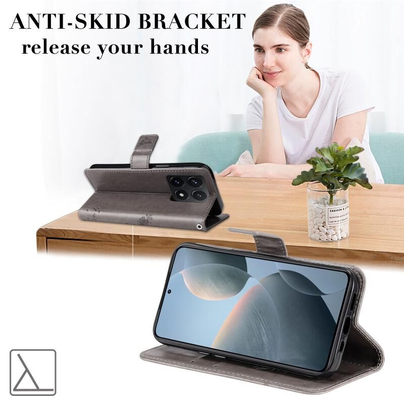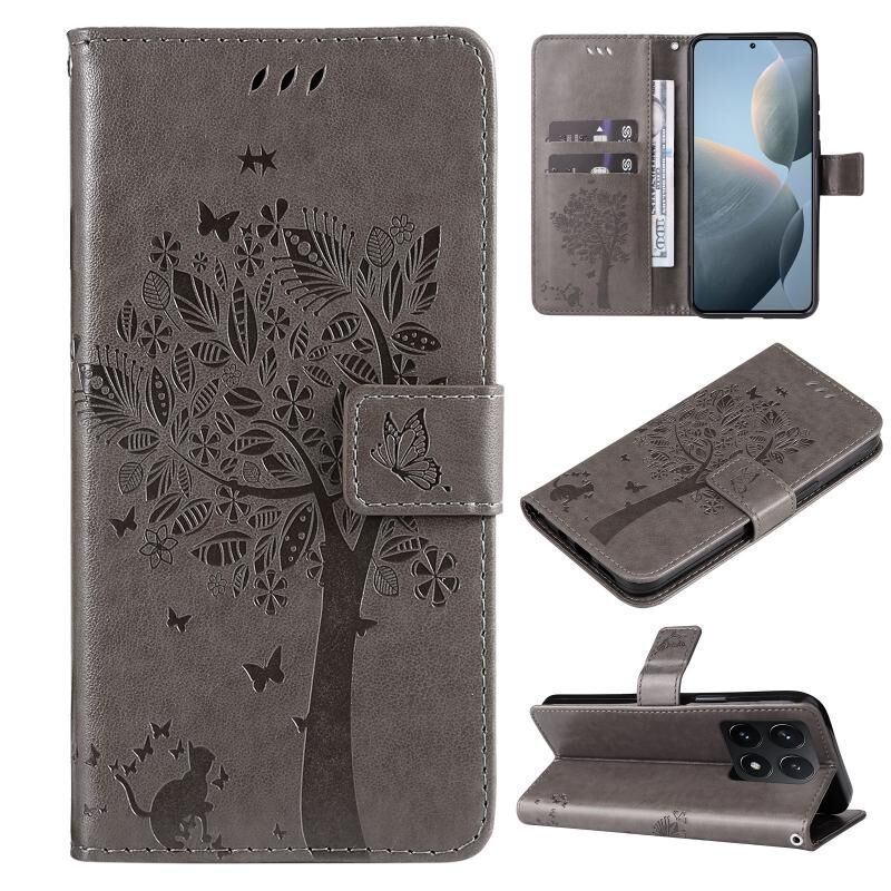 For Xiaomi 14T Tree & Cat Embossed Pattern Flip Leather Phone Case(Grey)