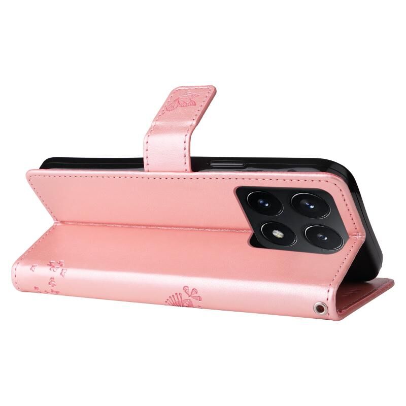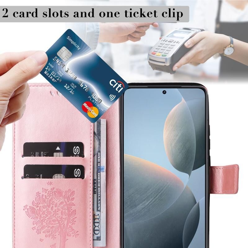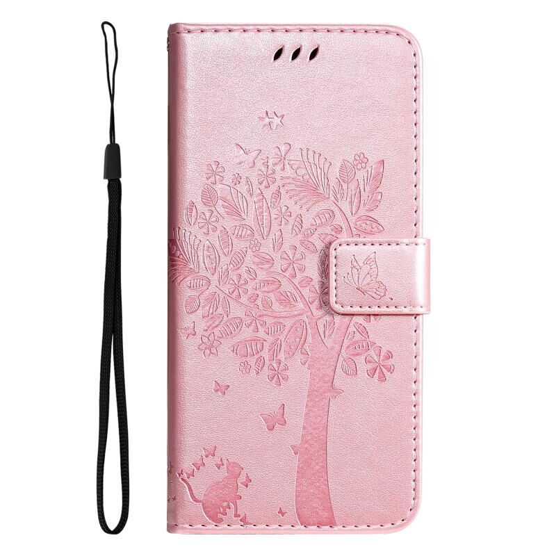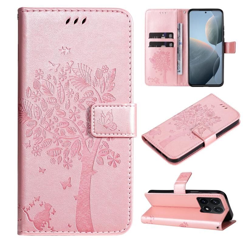 For Xiaomi 14T Tree & Cat Embossed Pattern Flip Leather Phone Case(Rose Gold)