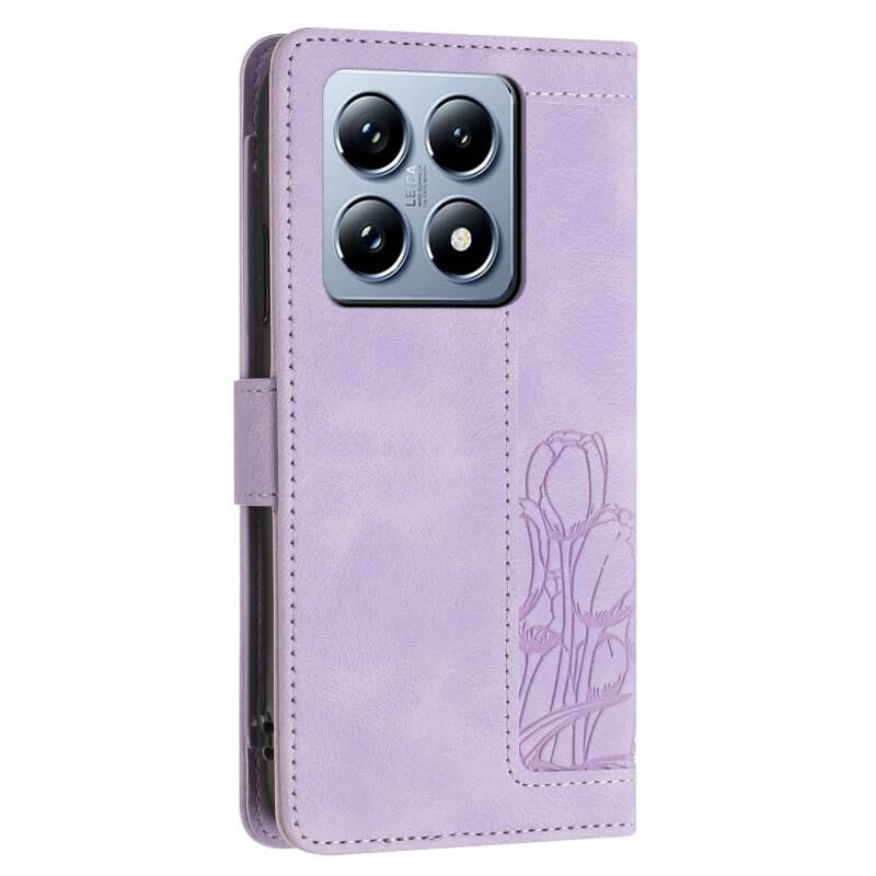 For Xiaomi 14T Tulips Embossed Leather Phone Case with Lanyard(Purple)
