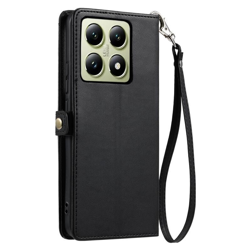 Για Xiaomi 14T Πορτοφόλι Multi-card Slot Δερμάτινη θήκη τηλεφώνου με κορδόνι (Μαύρο)