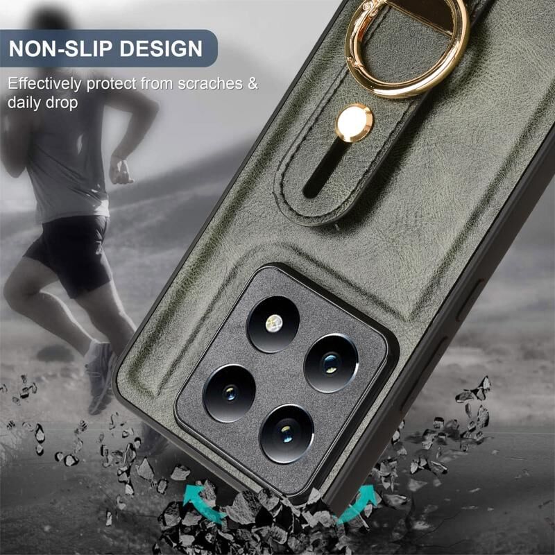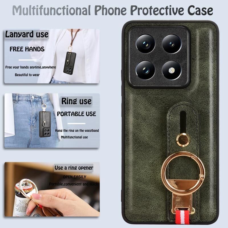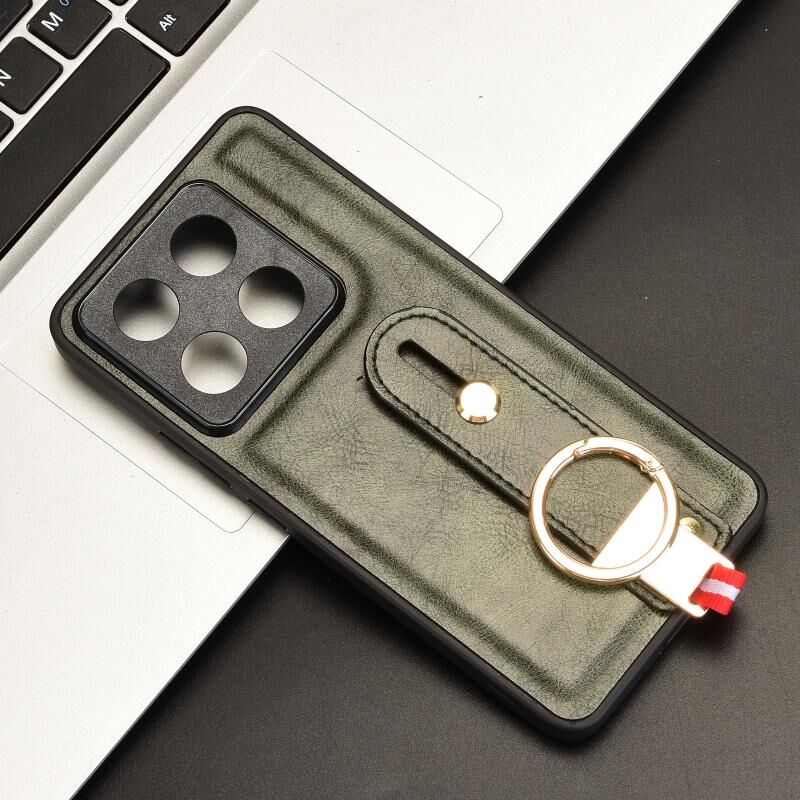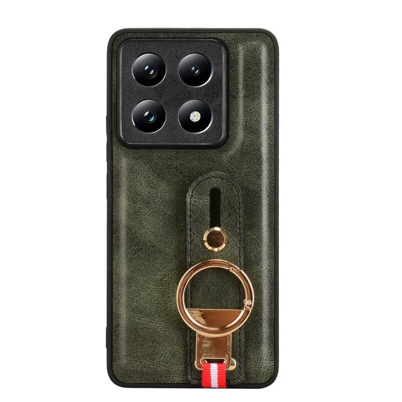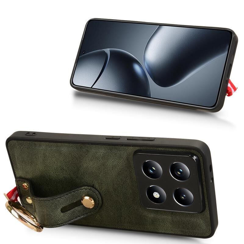 Για Xiaomi 14T Wristband δέρμα πίσω υπόθεση τηλεφώνου (πράσινο)
