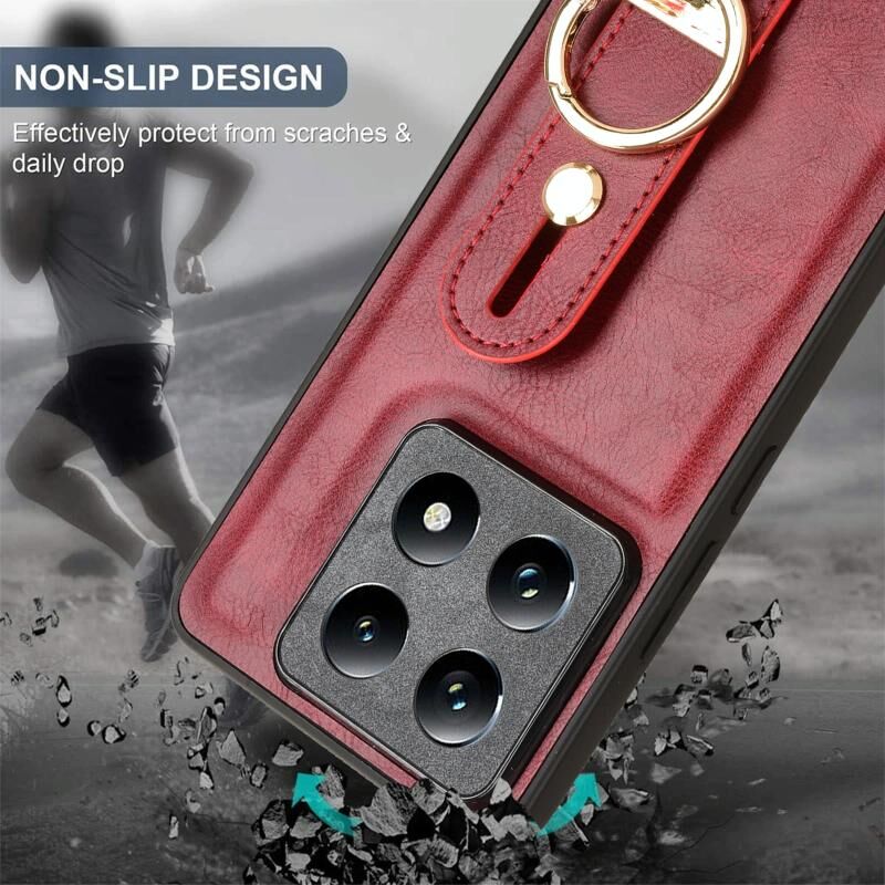 Για Xiaomi 14T Wristband δέρμα πίσω υπόθεση τηλεφώνου (κόκκινο)