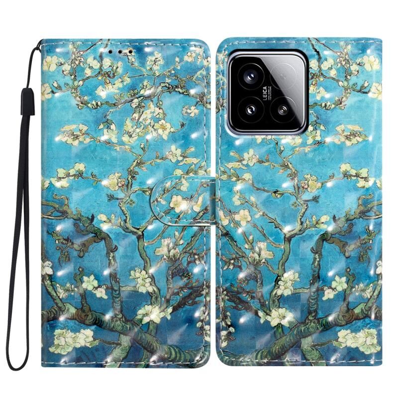 Θήκη τηλεφώνου από δέρμα με 3D σχέδιο για Xiaomi 15 (3D Ροζ Μπλε Μάρμαρο)
