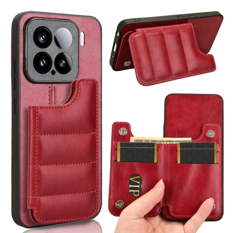 Για Xiaomi 15 Αγελάδα μοτίβο ραπτικής κάρτα τσάντα υπόθεση τηλεφώνου (κόκκινο)